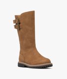 Bottes fille effet grainé avec brides fantaisie et à zip marron