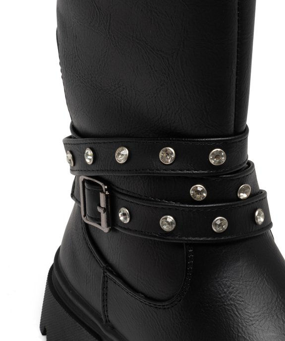 Bottes fille effet grainé avec brides fantaisie et à zip