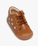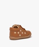 Bottillons premiers pas bébé fille dessus cuir à fleurs – NA! marron
