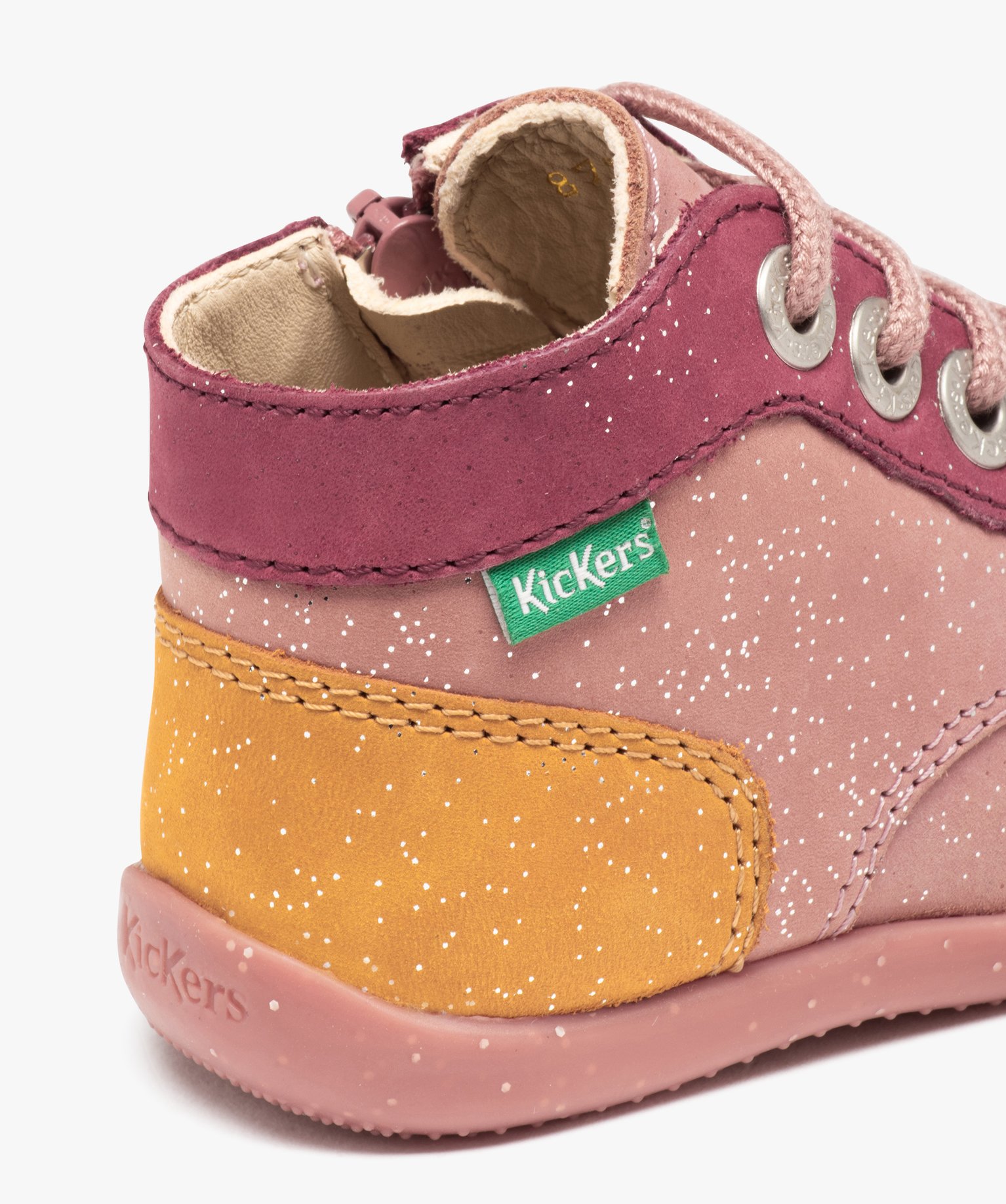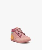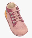 Bottillons premiers pas bébé fille en cuir Kickers rose