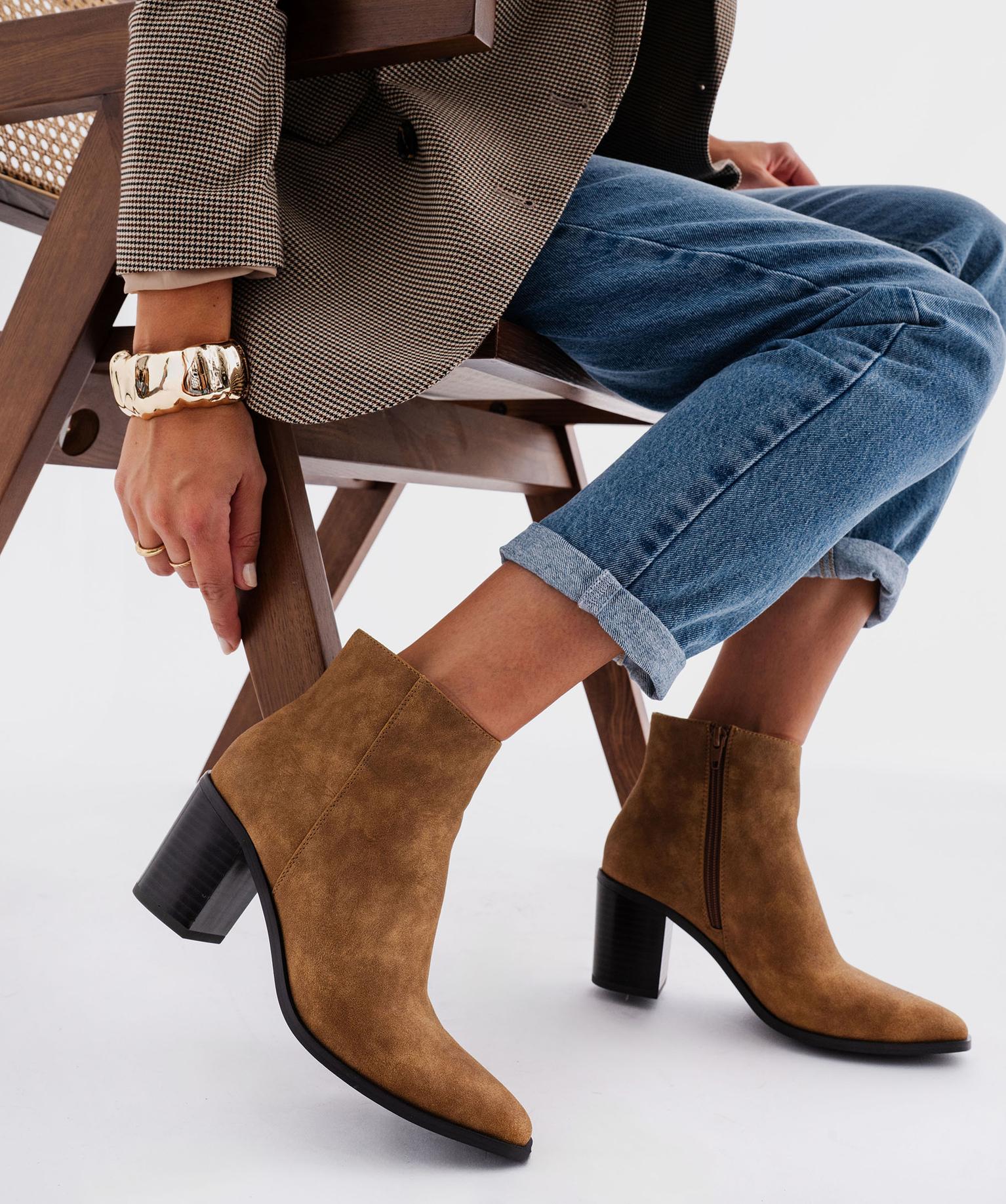 Elégance et sobriété sont au rendez-vous avec ces jolies bottines pour femme. Des bottines à la ligne effilée avec un bout carré contemporain et un large talon bloc, posées sur une semelle débordante. Un modèle à la fois tendance et intemporel facile à marier avec l’ensemble du dressing. Réalisées en cuir imitation lisse ou velours selon les coloris, ces bottines à talon Follow Me s’affichent comme un essentiel du vestiaire. Elles s’enfilent facilement grâce à un zip intérieur.