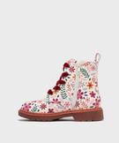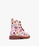La tendance imprimée continue de combler les dressings de vos enfants. Cette paire de bottines pour fille est idéale pour la saison, montante et à semelle crantée. Un joli style qui se porte avec un jean et une chemise bohème, ou une robe sur collants. Fermeture à zip intérieur et à lacets contrastants.