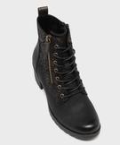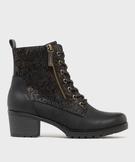 Bottines à talon à doublure chaude, zip et lacets femme noir