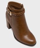 Bottines à talon avec bride tressée à la cheville femme - Valentina Baldano cognac