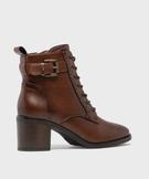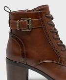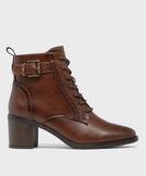 Bottines à talon avec semelle intérieure cuir, lacets ronds et zip femme marron