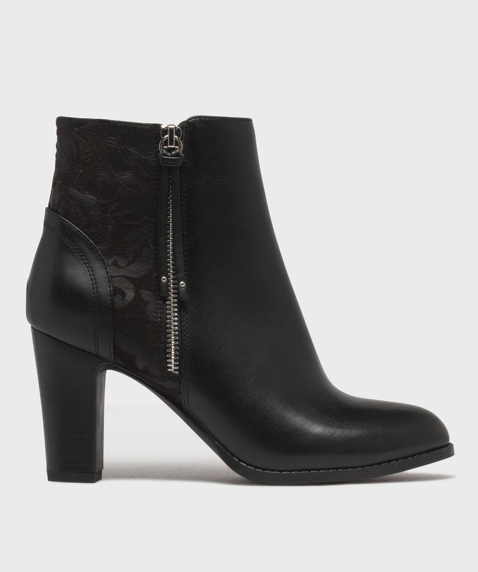 Rehaussez votre look avec style grâce à ces jolies bottines Emilia Rosa. Des chaussures élégantes, conçues en cuir imitation, avec empiècement à motifs fleuris sur l’arrière de la tige. Ces bottines femme sont agrémentées d’un zip décoratif sur le côté externe du pied et se ferment à l’aide d’un véritable zip côté interne. Elles reposent sur un talon élégant et accompagnent aussi bien une robe qu’un pantalon de costume.