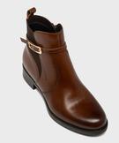 Bottines dessus cuir avec élastique latéral femme - Tanéo cognac