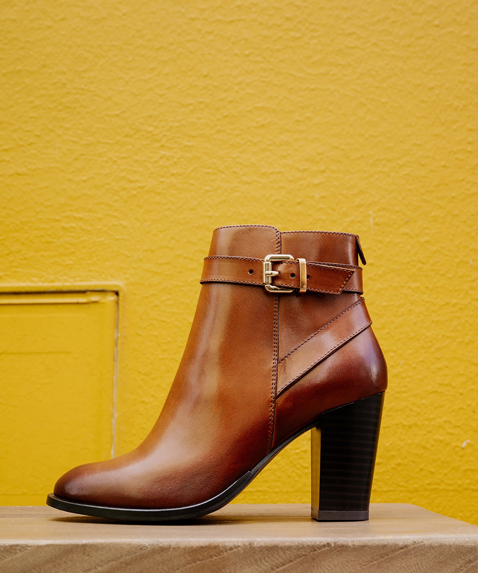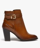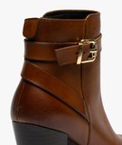 Bottines femme à talon carré dessus en cuir avec zip et bride fantaisie - Tanéo marron