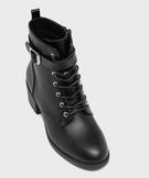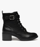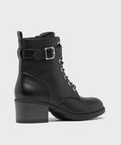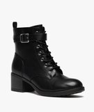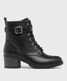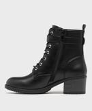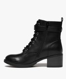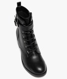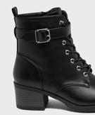Bottines femme à talon carré et à lacets avec bride à boucle noir