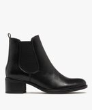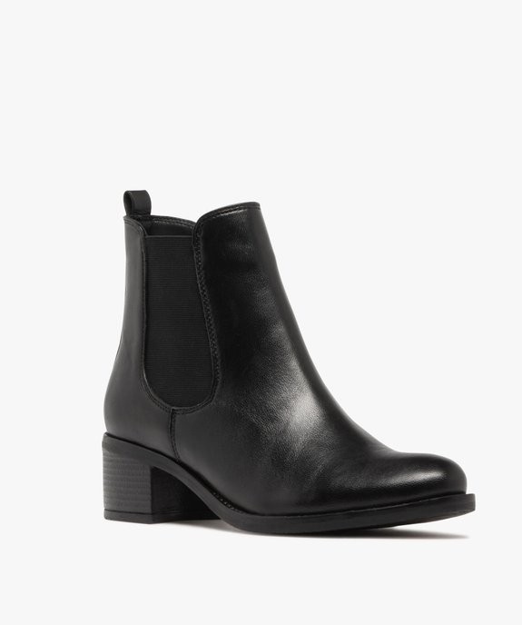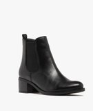 Bottines femme à talon dessus en cuir et bout amande style Chelsea - Tanéo noir