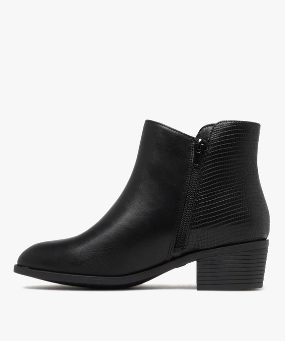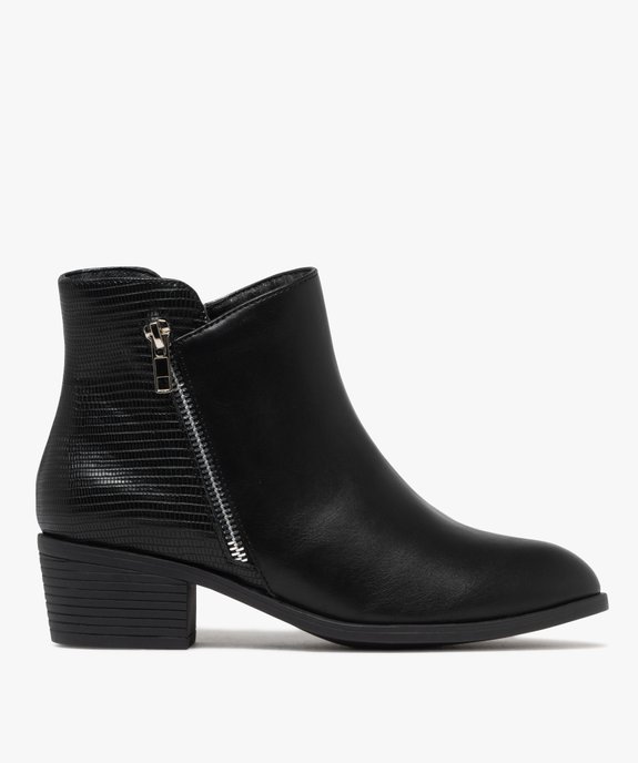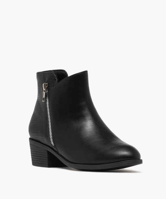 Bottines femme avec zip fantaisie et arrière effet grainé noir