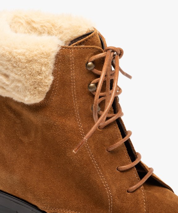 Bottines femme dessus cuir retourné col fourré – Tanéo marron