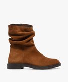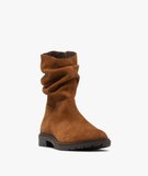 Bottines fille dessus en cuir effet drapé à zip marron clair