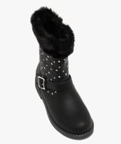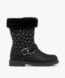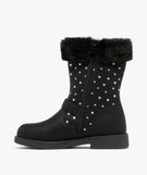 Bottines fille fourrées et à col duveteux avec étoiles brillantes[MISSING] noir
