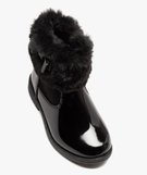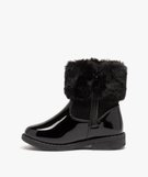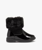 Ces boots pour fille affichent une allure coquette avec leur tige vernie et leur col en fourrure imitation rehaussée d'un nœud pailleté. Avec leur doublure en textile rembourrée et leur semelle intérieure moelleuse, ces bottines sont adaptées au froid. On les associera facilement à une robe avec des collants épais. Tige montante en suédine, dessus vernis. Fermeture zippée sur le côté interne du pied.