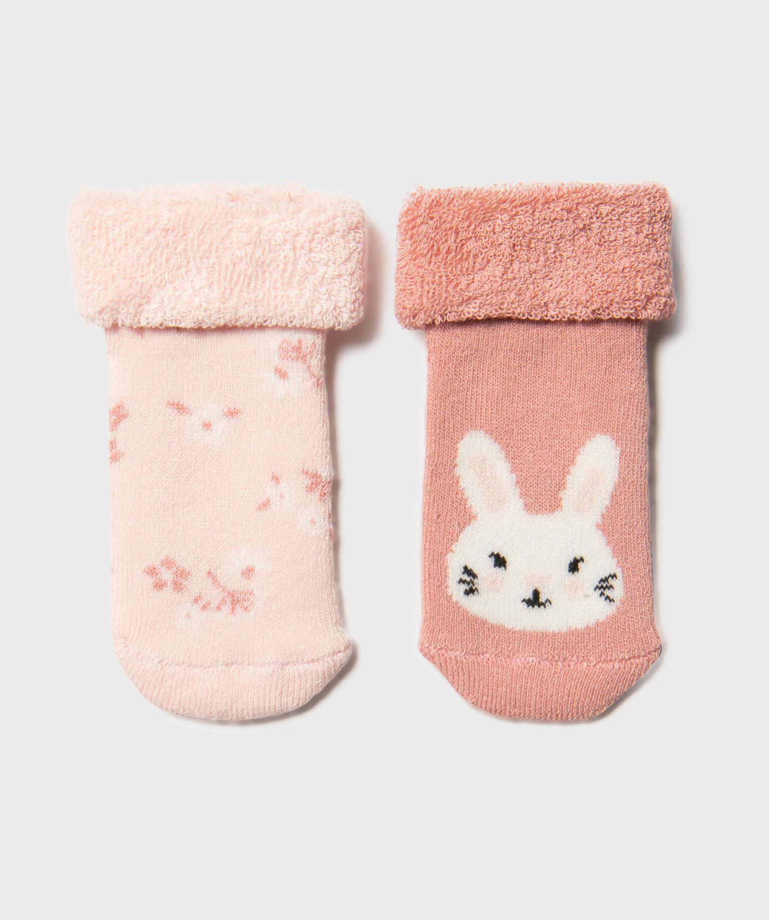 Pour réchauffer et protéger les pieds de votre nouveau-né sans l'encombrer, adoptez les bottons ! Ce lot de 2 paires de chaussettes bébé se compose d’une paire parsemée de petites fleurs et d’une paire ornée d’une tête de lapin. Des chaussettes bébé bien épaisses confectionnées en coton ultra doux et ultra moelleux, avec intérieur bouclette. À porter sous ou sur le pyjama.