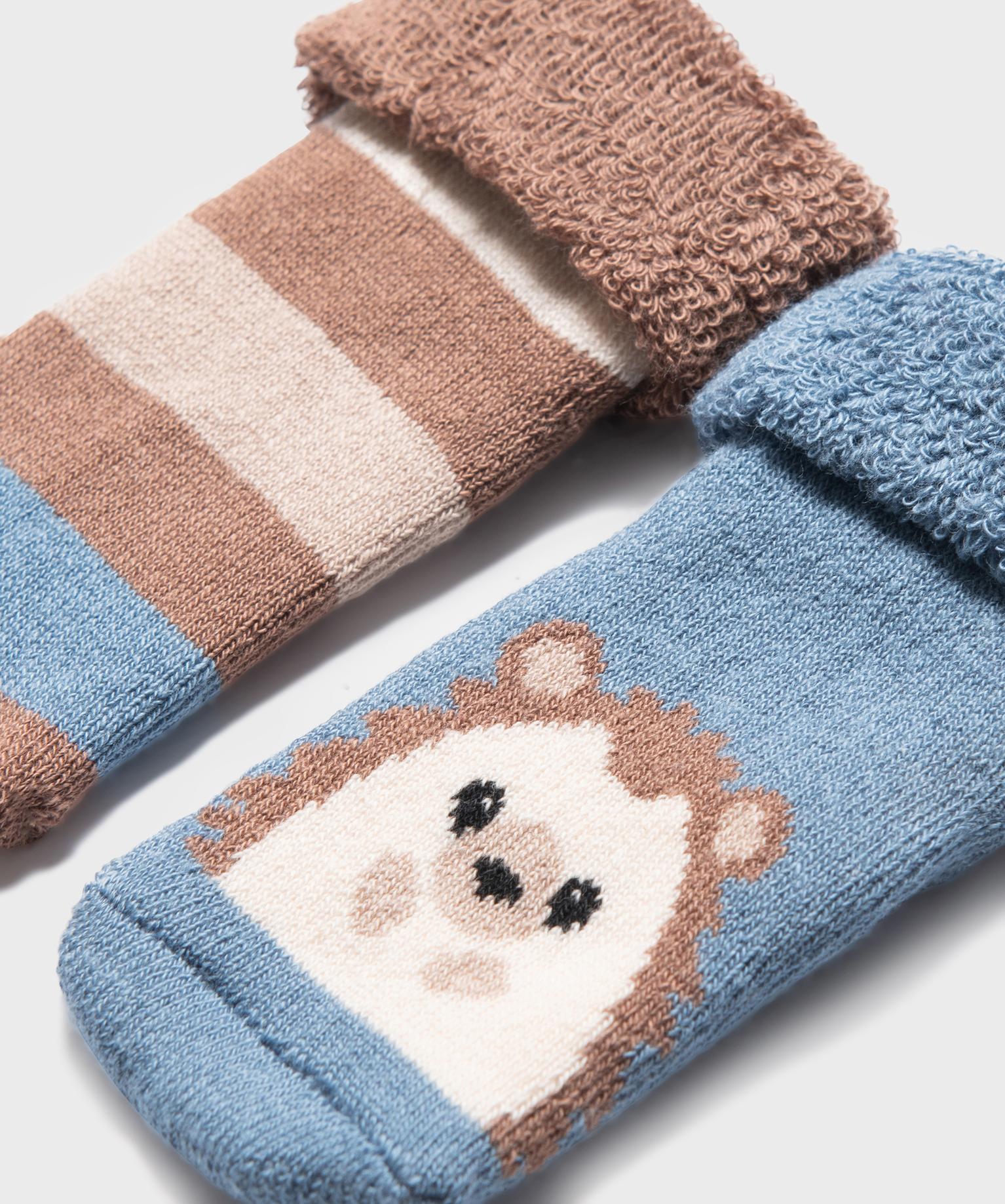 Bottons en coton avec intérieur bouclette motif hérisson bébé (lot de 2) bleu