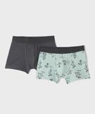 Boxer coton stretch 1 uni / 1 imprimé garçon (lot de 2) vert