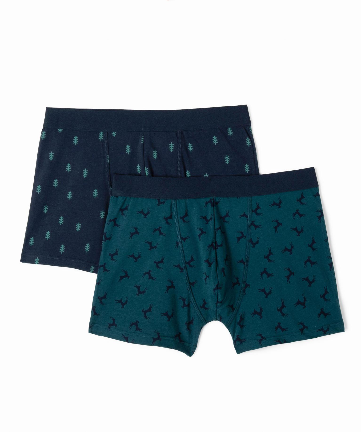 Pour Noël, faites un cadeau utile et rigolo aux hommes de votre famille avec ce chouette pack de 2 boxers homme très festifs ! À l'intérieur d'une jolie boîte cadeau aux couleurs de Noël, découvrez un boxer imprimé de petits sapins et un boxer imprimé de rennes. Les 2 boxers sont fabriqués à partir de coton biologique extensible, pour une douceur et un confort absolus. Les sous-vêtements sont dotés d'une large ceinture en élastique plat (3 cm) qui maintient sans comprimer.