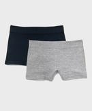 Lot de 2 boxers fille très confortables. Confection en maille côtelée douce et extensible, sans coutures pour plus de douceur. Les sous-vêtements unis sont déclinés dans des couleurs indémodables, sobres, faciles à assortir avec tout type de vêtement ou de brassière.