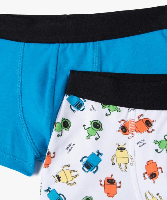 Boxers en coton stretch uni et imprimé garçon (lot de 2) bleu