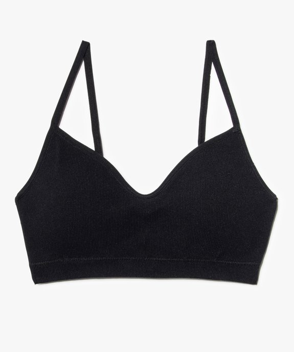 Brassière à fines bretelles en maille côtelée avec mousses amovibles fille noir