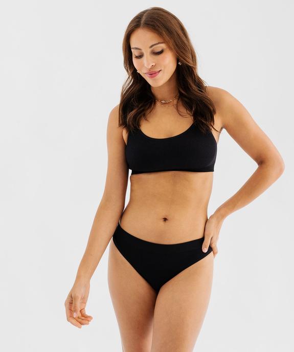 Cette brassière en maille côtelée extensible vous procurera un confort unique ! La brassière femme, confectionnée en polyamide recyclé, est entièrement doublée et dotée de bretelles ajustables. Elle offre ainsi un bon maintien. Elle est idéale au quotidien, sous un tee-shirt ou une tenue d’intérieur. N'hésitez pas à la porter comme brassière de sport avec un legging pour des activités douces.