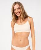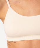 Cette brassière en maille extensible vous procurera un confort unique. Une brassière femme ultra douce, confectionnée en polyamide recyclé. Elle offre un excellent maintien grâce à une bande côtelée élastique sous la poitrine. Très confortable sous un tee-shirt ou une tenue d’intérieur, elle peut également être portée comme brassière de yoga avec un legging.