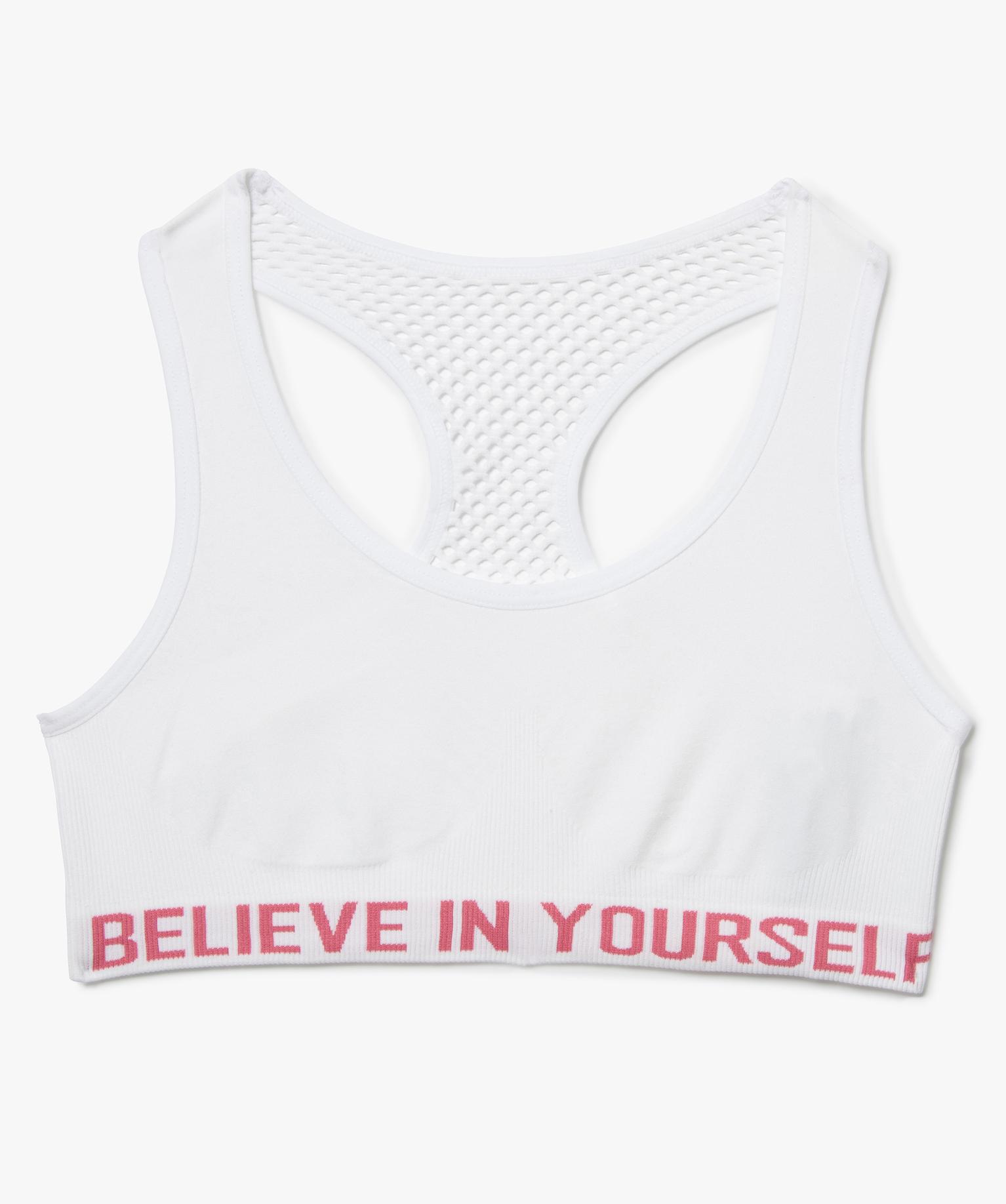 Brassière fille dos nageur en maille ajourée blanc