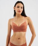 Brassière push-up en maille côtelée à fines bretelles marron
