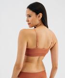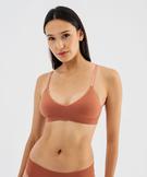 Cette jolie brassière triangle offre toute l'élégance d’un soutien-gorge, le confort en plus ! Elle est confectionnée dans une maille texturée extensible et entièrement doublée. Cette brassière femme dotée de mousses amovibles sera parfaite sous les tenues confortables, les tenues d’intérieur ou comme brassière de sport pour la pratique des activités à faibles impacts tels que le yoga ou le Pilates. Cette brassière sans armatures est bordée de biais scintillants pour la touche de glam’.