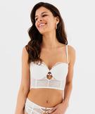 Bustier balconnet à bonnets paddés. Malin, le bustier femme est équipé de bretelles multipositions : ces dernières, amovibles, peuvent se porter droites ou croisées dans le dos, grâce à un système de crochets facile à manipuler. Le bustier est confectionné dans une dentelle moderne et très féminine, qui joue le jeu de la transparence. On craque pour l'ouverture avec breloque dorée à l'entrebonnet. Cette sublime pièce de lingerie offre aussi confort et maintien : elle est dotée d'armatures, de baleines souples, de bretelles ajustables et d'un cordon silicone. Le bustier se ferme à l'aide d'une rangée de 8 agrafes dans le dos, réglables sur 3 positions.