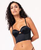 N'hésitez pas à adopter ce joli bustier forme balconnet afin de sublimer votre décolleté ! Ce bustier pour femme affiche un style audacieux grâce à sa matière satinée et ses bonnets rembourrés qui ajoutent du volume. Vous apprécierez le maintien optimal de ce bustier à armatures, équipé de baleines souples sur le buste. Doté de bretelles multi-positions amovibles, il s'adapte à tous les types de décolletés. Il se ferme grâce à une rangée de 8 crochets dans le dos.
