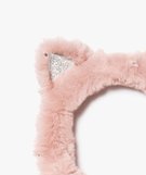 Cache-oreilles fille en matière peluche oreilles de chat et détails brillants rose