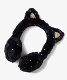 Cache-oreilles fille en matière peluche oreilles de chat et détails brillants noir