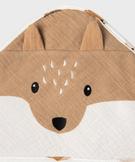 Transformez le moment du bain en véritable instant de tendresse avec cette sortie de bain bébé ornée d’adorables animaux. Réalisée dans une gaze de coton aérienne doublée d’un tissu éponge moelleux, elle offre une sensation de confort et de bien-être dès la toilette. Sa capuche brodée d’une tête de renard enveloppe délicatement la tête de bébé pour le garder bien au chaud. Grâce à son format généreux et à ses matières douces et absorbantes, cette sortie de bain à capuche permet un séchage rapide tout en élégance. Un essentiel du trousseau, pratique et craquant !
