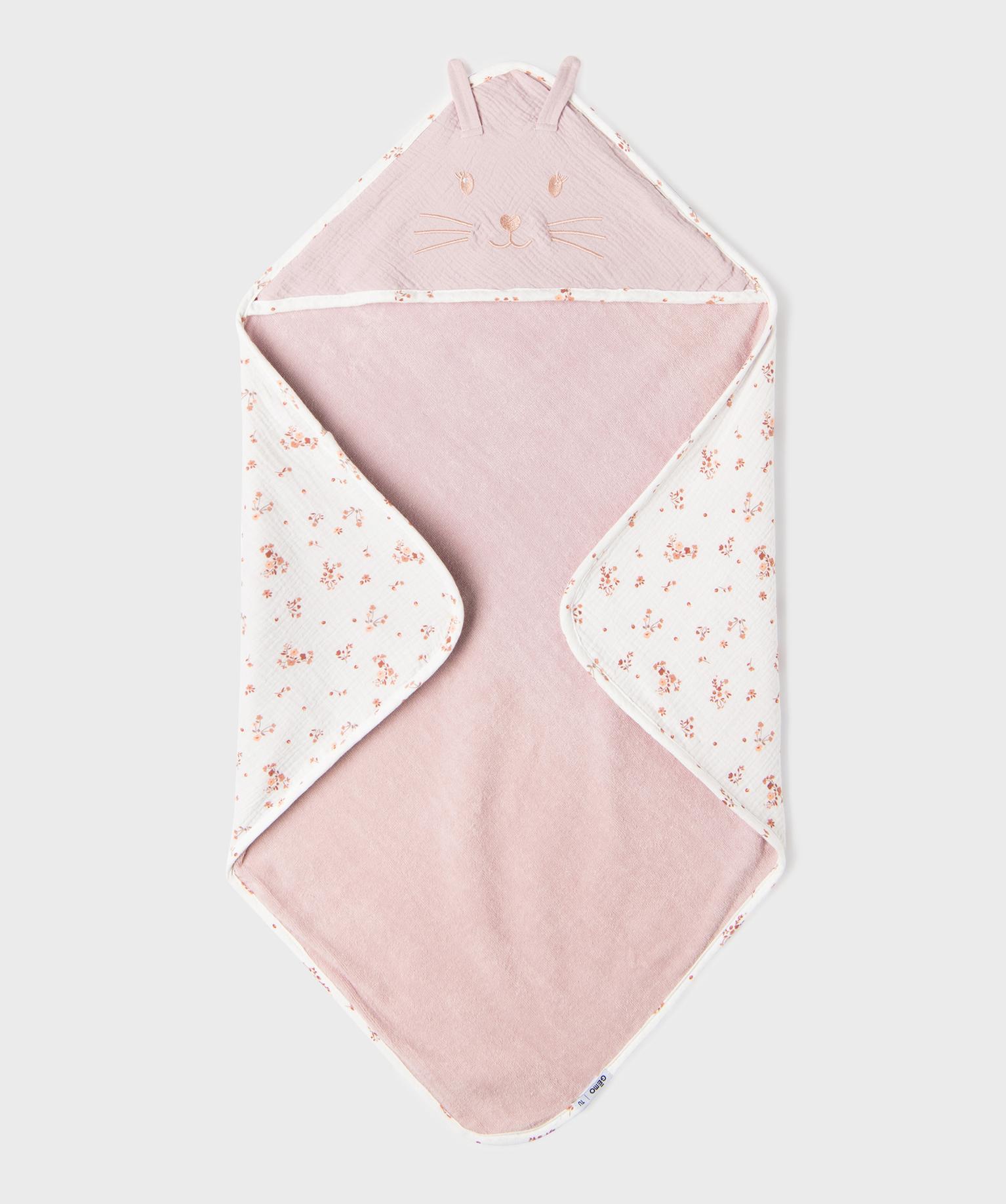 Cape de bain à motifs fleuris bébé fille ecru