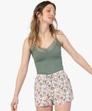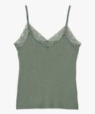 Caraco femme à fines bretelles et décolleté dentelle kaki