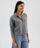 Cardigan zippé coupe courte femme noir