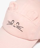 Une adorable casquette pour bébé fille, décorée d'un motif chat avec oreilles en relief et détail pailleté. Spécialement conçue pour les tout-petits, cette casquette possède un élastique sur l'arrière pour un ajustement et un maintien parfaits, une calotte souple très confortable et une bande de propreté intérieure finement matelassée. Visière rigide courbée.