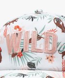 Efficace, tendance et girly ? C'est le pari réussi de cette casquette pour fille ! L'accessoire est confectionné dans un coton imprimé jungle parsemé de feuillages, de fleurs et de léopards ! Sur l'avant, l'inscription "Wild" en paillettes est brodée. La visière courbée et surpiquée présente le même motif sur le dessus et est unie sur le dessous. Confortable et pratique, la casquette possède un élastique de maintien sur l'arrière.
