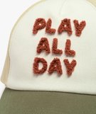 Cette casquette tricolore rehaussée d’un message en maille bouclette accessoirisera tous les looks décontractés de l’été en y ajoutant une irrésistible touche de style ! Un casquette garçon à porter pour se protéger des rayons du soleil, mais aussi pour arborer un look streetwear. Elle possède un bouton sur le dessus, des oeillets d’aération brodés et s’ajuste à chaque tour de tête à l’aide d’une bride à scratch.