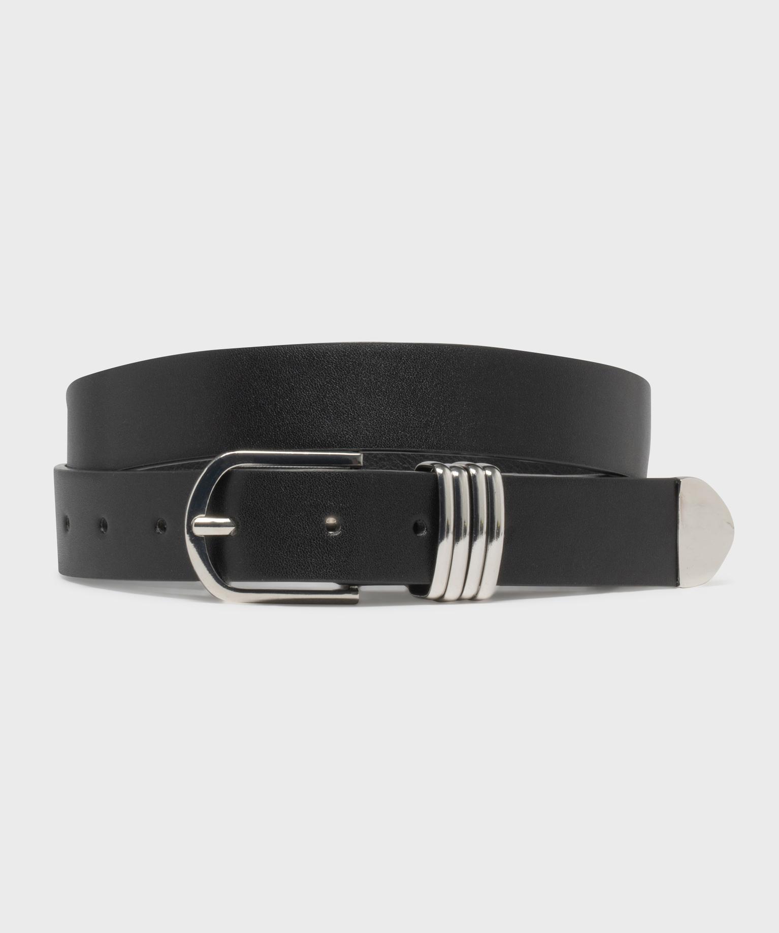 Ceinture avec boucle et passants métalliques femme noir