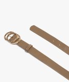 Ceinture avec double boucle en métal torsadé femme marron clair