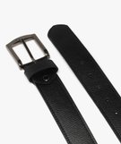 Ceinture dessus cuir grainé avec grosse boucle rectangle homme[MISSING] noir