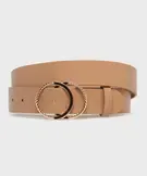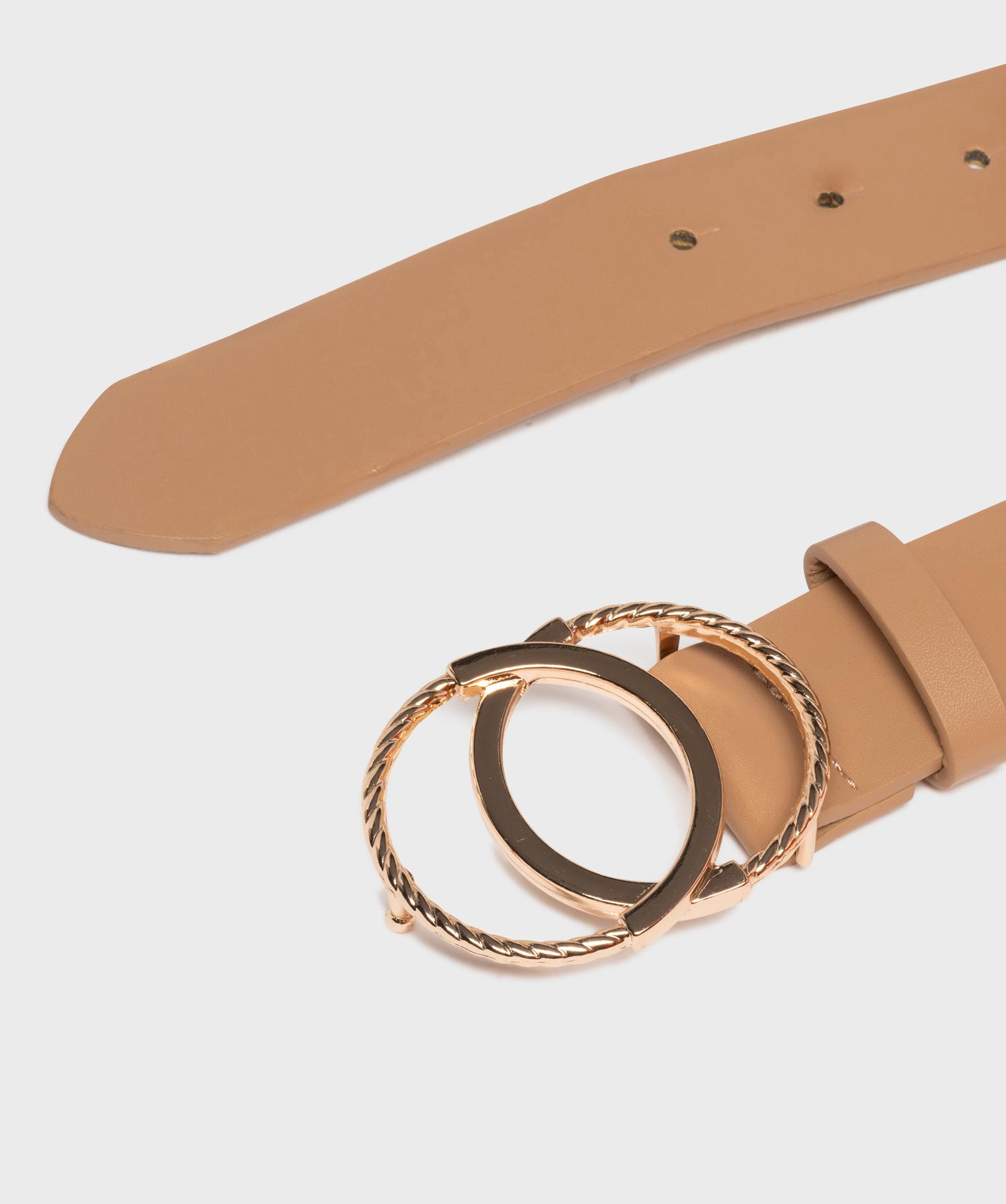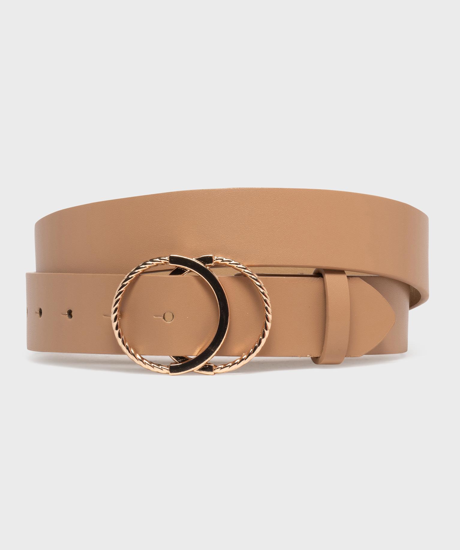 Ceinture en cuir imitation à double boucle bijou femme beige