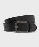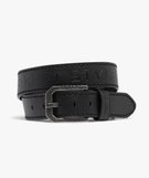 Une ceinture homme au look audacieux conçue en matière grainée, twistée par des inscriptions gravées et des surpiqûres sur les côtés. Elle se ferme par une imposante boucle en métal vieilli également agrémentée d’une gravure. Une ceinture ultra tendance à porter avec un jean et à intégrer dans tous les looks streetwear.