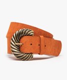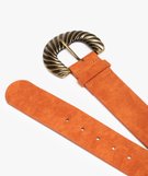 Ceinture femme large toucher velours à grosse boucle métal orange fonce