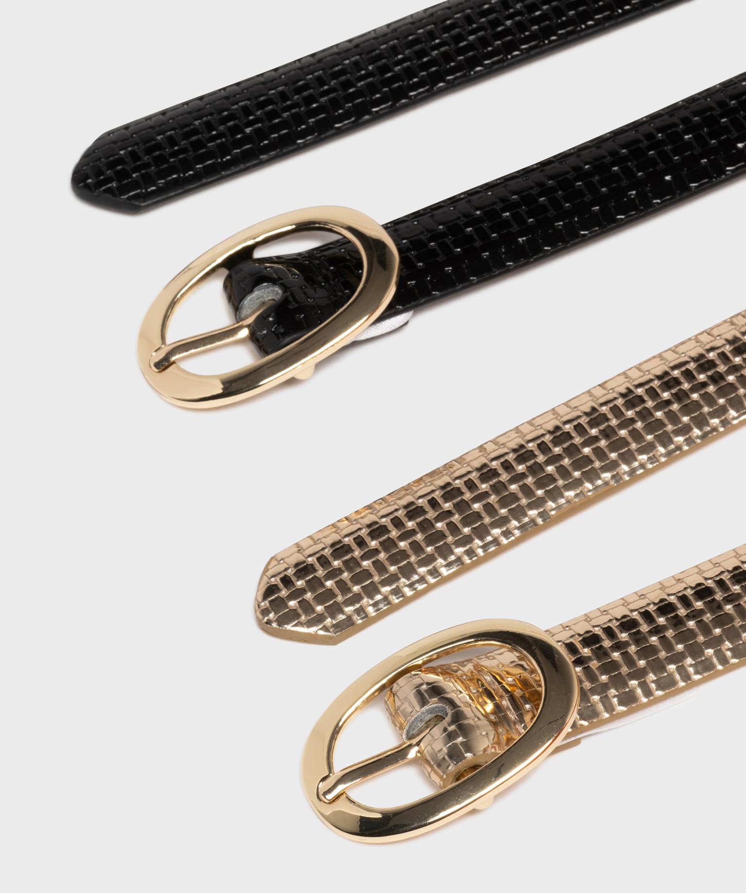 Ceinture fine texturée à boucle ovale dorée femme (lot de 2) noir