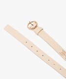 Une jolie ceinture sobre ornée de détails d'inspiration bohème. Cette ceinture pour femme est fabriquée dans une matière grainée mise en relief par des brides tressées au motif graphique. Elle est équipée d'une petite boucle ronde en métal. Une ceinture idéale pour ajouter une touche folk à un jean ou à une jupe longue.